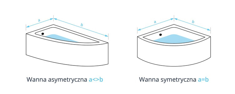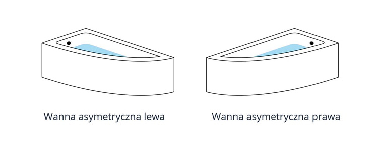 Przed zakupem wanny asymetrycznej zastanów się, przy której ścianie w łazience ma być ona umiejscowiona. Jest to o tyle istotne, że tego typu wanny produkowane są w dwóch wersjach - z dłuższą prawą przyprostokątną lub z dłuższą lewą przyprostokątną.