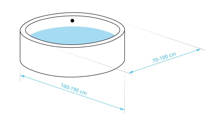 W przypadku wanien okrągłych w Łazienkaplus.pl możesz zakupić modele ze średnicą 160 cm.