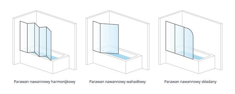 • Składane – najprostsza wersja takiego parawanu składa się z jednego składanego skrzydła. Tego rodzaju parawan może mieć ich nawet siedem. Montując taki model masz pewność, że podczas kąpieli nie zachlapiesz łazienki wodą.