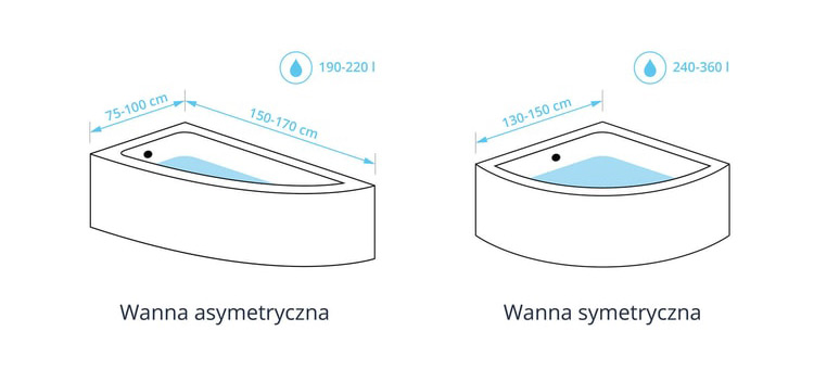 Zwykle kiedy wybieramy wannę wydaje nam się, że jej pojemność uzależniona będzie od jej wielkości. Nie jest to do końca prawdą, gdyż kształt wanny ma również na to wpływ! Najmniejsze modele mają pojemność już od 70 litrów. Z kolei w największych mieści się ponad 450 litrów wody.