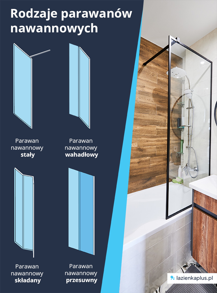 Kupując parawan nawannowy, zwróć uwagę, by dopasować go nie tylko do stylu panującego we wnętrzu, ale przede wszystkim do kształtu wanny i wielkości samej łazienki (np. trzeba pamiętać, że parawan wahadłowy wymaga sporo wolnego miejsca przed wanną).