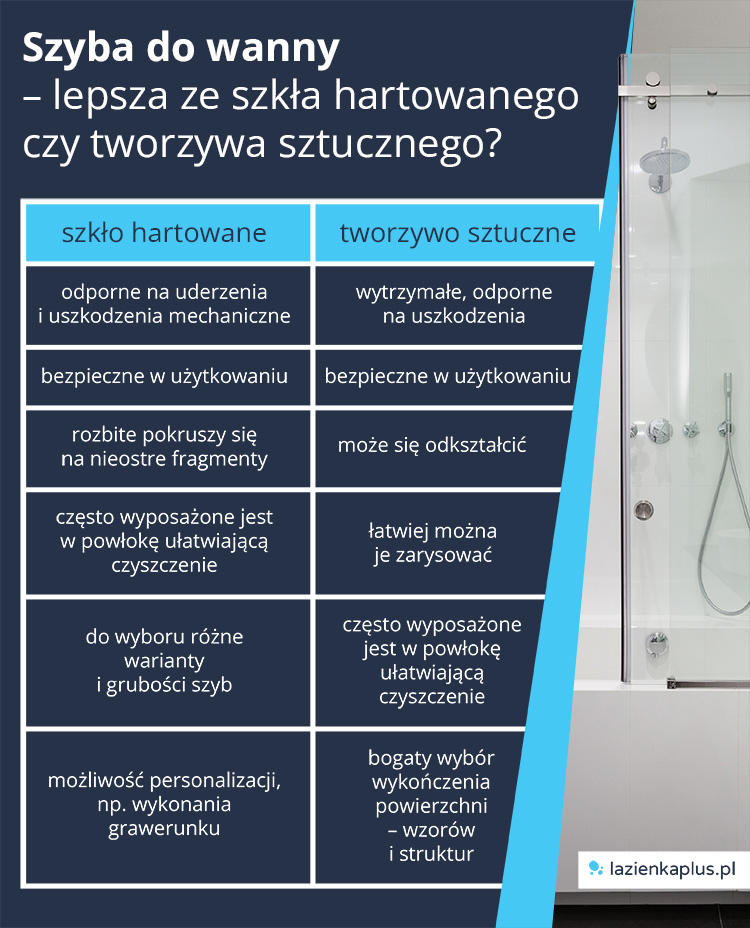 - osłony wannowe (wykonane z hartowanego szkła), dłużej utrzymują ciepło, co podnosi komfort kąpieli.