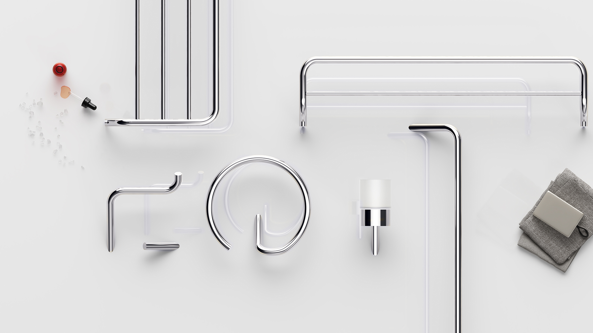 Tej kolekcji nie sposób pomylić z żadną inną. Jej wyróżnikiem jest surowa w formie, choć perfekcyjnie wymodelowana i gładko wyszlifowana rura. Wyraźnie wyczuwa się w niej inspirację instalacjami czy urządzeniami, które nadawały charakter prawdziwym przestrzeniom postindustrialnym – halom fabrycznym albo magazynom. Ten motyw swoją pełnię osiąga w spektakularnej deszczownicy (nagrodzonej m.in. prestiżową Red Dot Award 2024), ale i w akcesoriach łazienkowych wybrzmiewa bardzo mocno. Warto się im przyjrzeć.
