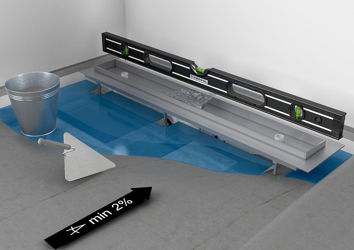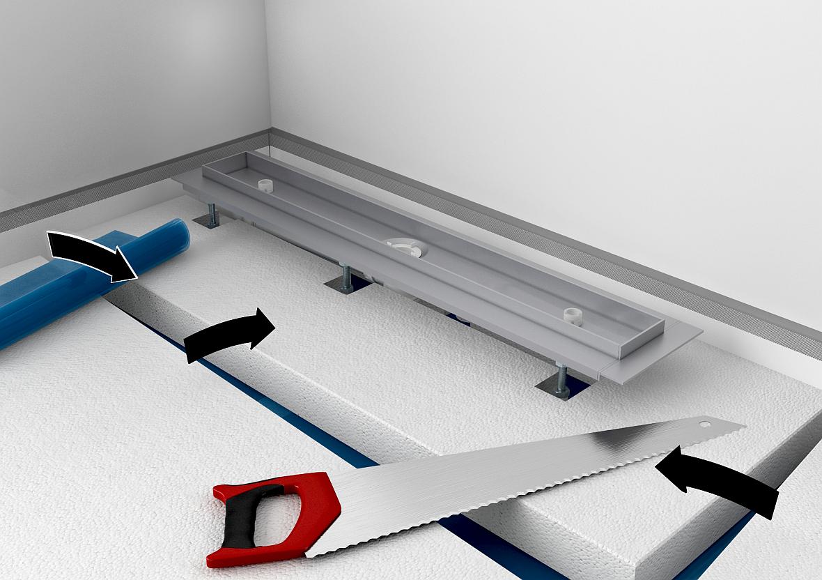 Instalując standardowy odpływ liniowy, wykonawca musi samodzielnie wykonać warstwę jastrychu, przygotować odpowiednie spady dla prawidłowego odprowadzania wody oraz wykonać warstwę hydroizolacyjną podłogi. Wszystkie te czynności są czasochłonne oraz wymagają fachowości i szczególnej staranności.