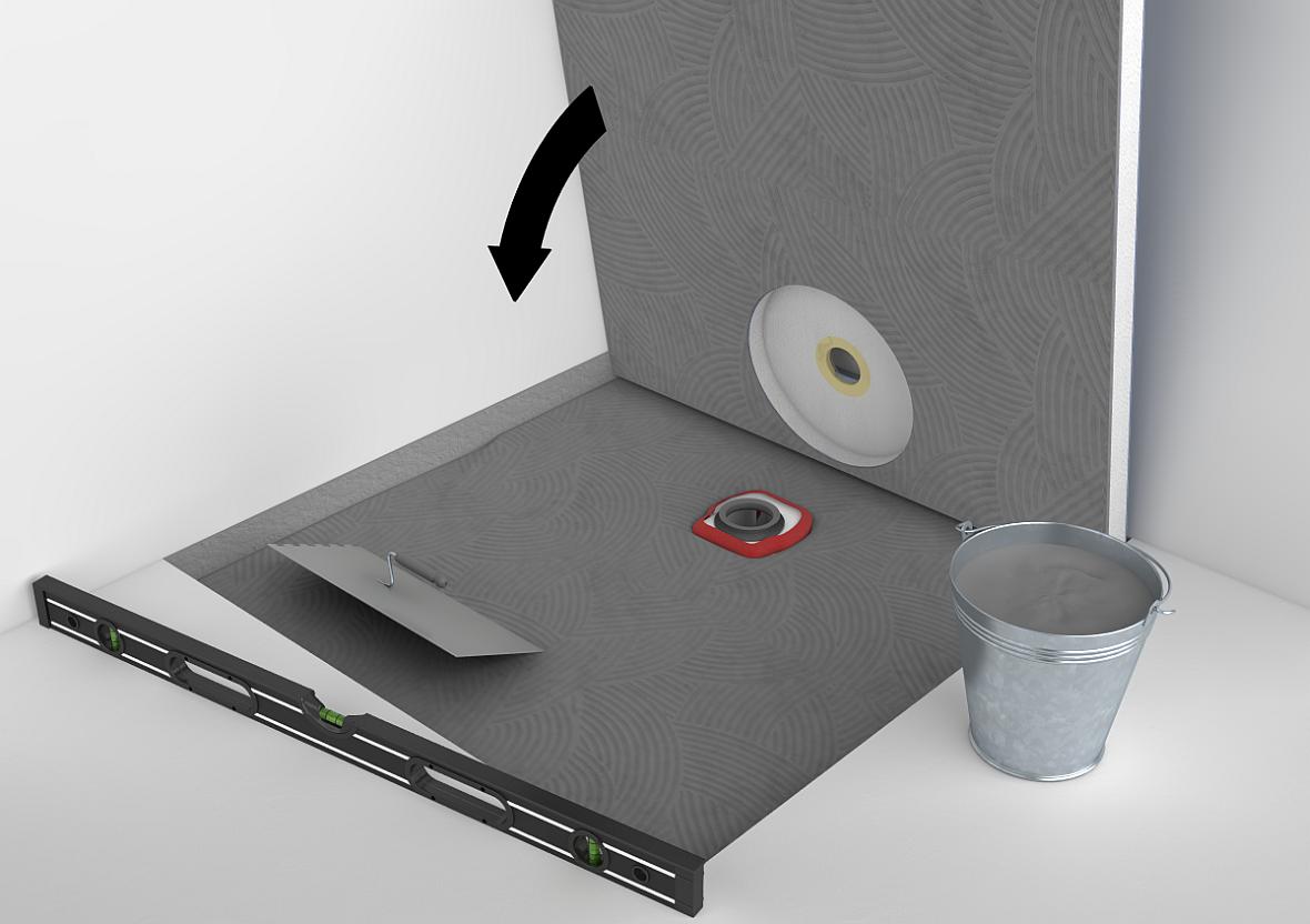 Wybór brodzika podpłytkowego, który posiada już płytę spadkową z ukształtowanym odpływem i uszczelnieniem, znacznie upraszcza ten etap. Fabrycznie uszczelniona wielowarstwowa płyta, posiada wytyczone idealne 2% spady gwarantujące bezproblemowy odpływ wody.