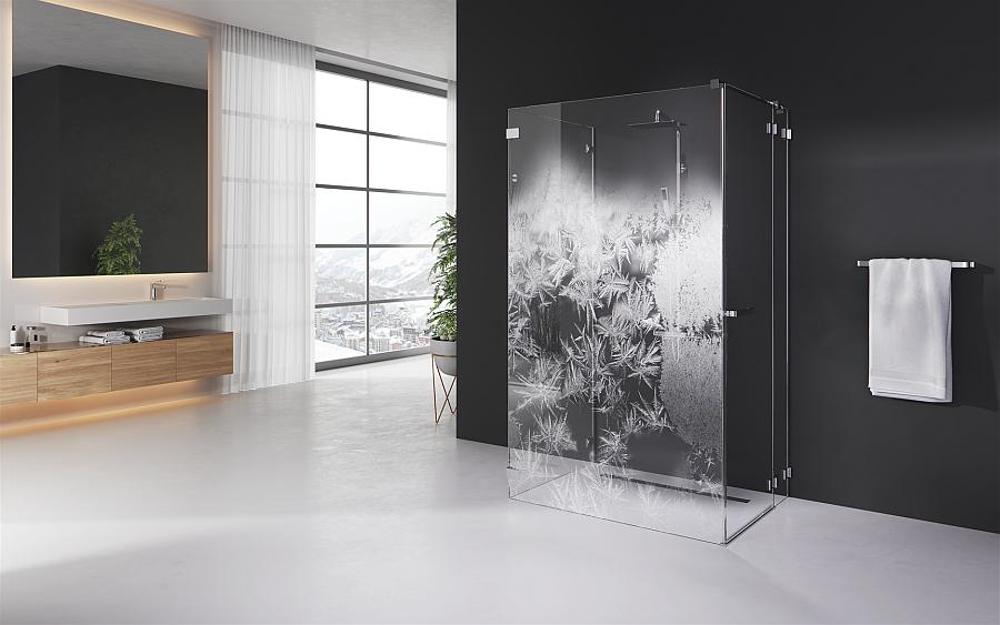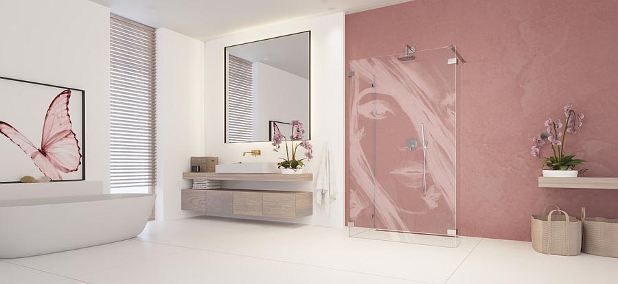 Swoich zwolenników ma także bogaty i pełen przepychu styl glamour. Stosuje się w nim czerń i złoto, które występuje na ścianach, w mozaice i dekoracjach. We wnętrzu glamour sprawdzi się kabina ze szkłem Mirror, pokrytym lustrzaną powłoką, na którym możemy wygrawerować dowolny wzór np. z nutką barokowego klimatu.