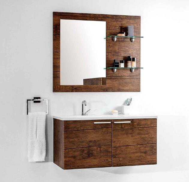 W modzie są zatem zarówno meble łazienkowe z naturalnego, egzotycznego drewna, jak i meble wykonane z płyty MDF z imitującym drewno laminatem. Drewniane fronty szafek łazienkowych łączą się idealnie z drewnianą podłogą, ale także z praktycznie wszystkimi kolorami ceramiki. Warto przemyśleć płytki drewnopodobne, które łączą ze sobą elegancję drewna oraz łatwość mycia.