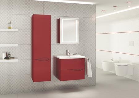 Nieco bardziej klasycznie, ale jednocześnie niezwykle ożywczo prezentuje się w łazience czerwień (np. pod postacią szafki Defra Murcia).
