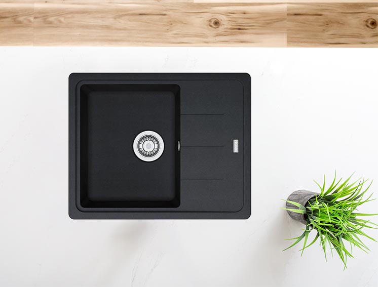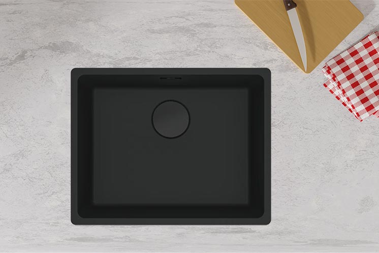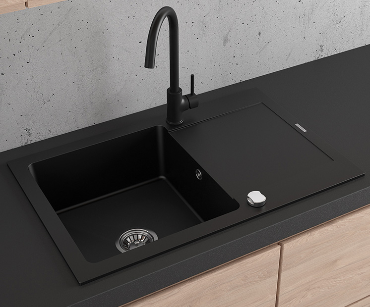 Wykończenie zlewu w odcieniu czarny mat doda nawet najmniejszemu wnętrzu powiewu luksusu i elegancji, a odporny materiał zabezpieczy jego kolor i zapewni niezmienność jakości produktu wraz z upływem czasu.