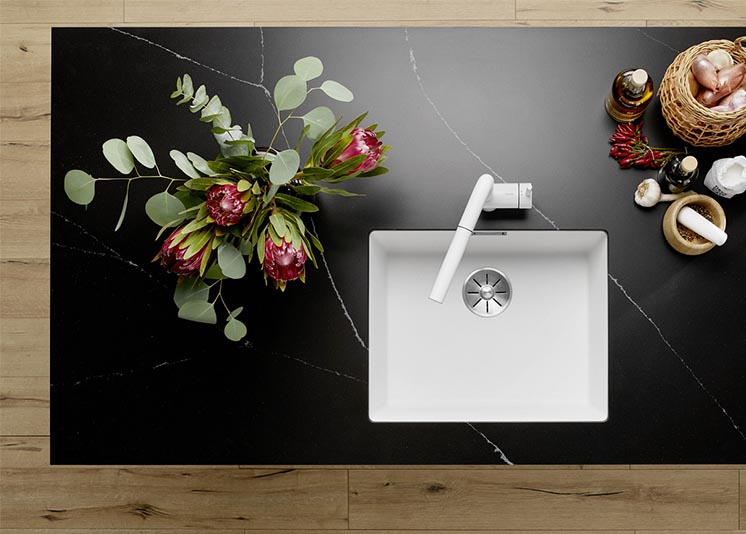 Zlewozmywak Blanco Subline 500-U z jedną komorą o głębokości 19 cm bez problemu pomieści największe naczynia, a jednocześnie jest świetnym rozwiązaniem do małych kuchni, w których każde dodatkowe miejsce jest na wagę złota. Na rynku dostępne są dodatkowe akcesoria do zlewu, takie jak ociekacz, odsączarka czy kosz na naczynia ze stali szlachetnej, które pozwalają zmaksymalizować funkcjonalność przestrzeni roboczej zlewozmywaka i ułatwiają codzienne czynności.