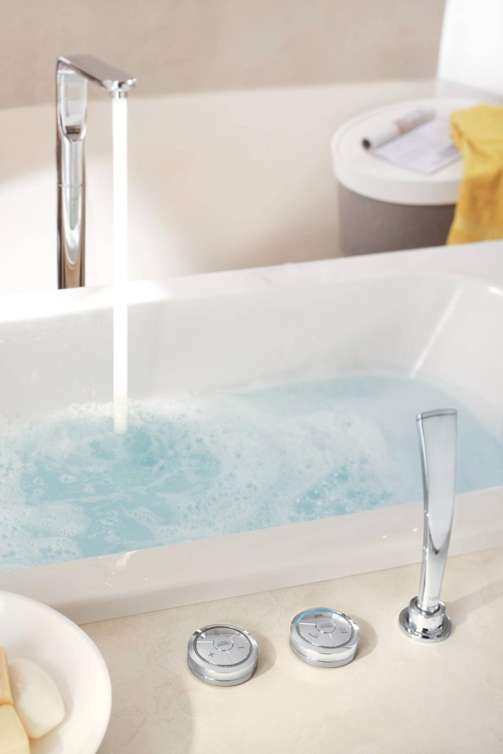 Osobom, którym znudził się tradycyjny sposób interakcji z wodą, z pewnością spodoba się elektroniczny przełącznik i sterownik GROHE F-digital. Wyglądem i wymiarami przypominają one krążki do hokeja, które pokryto lśniącą powłoką z chromu, jednak ich możliwości są znacznie ciekawsze! Pozwalają one na precyzyjną kontrolę nad parametrami wody, na nawet 3 jej wyjściach!