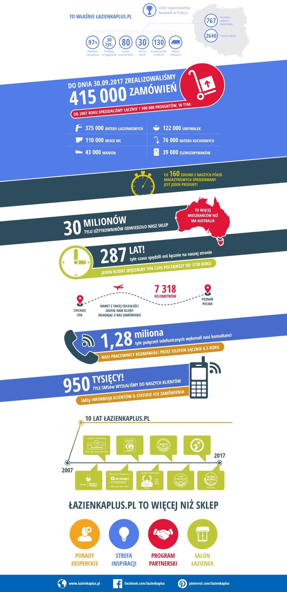 Łazienkaplus.pl to zespół zgranych i energicznych osób (jest nas 80), którzy każdego dnia dokładają wszelkich starań, by zadowolić Wasze nawet najbardziej wymagające oczekiwania. Dziękujemy Wam, że jesteście z nami i tak pięknie nas nagrodziliście!