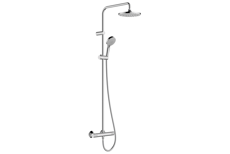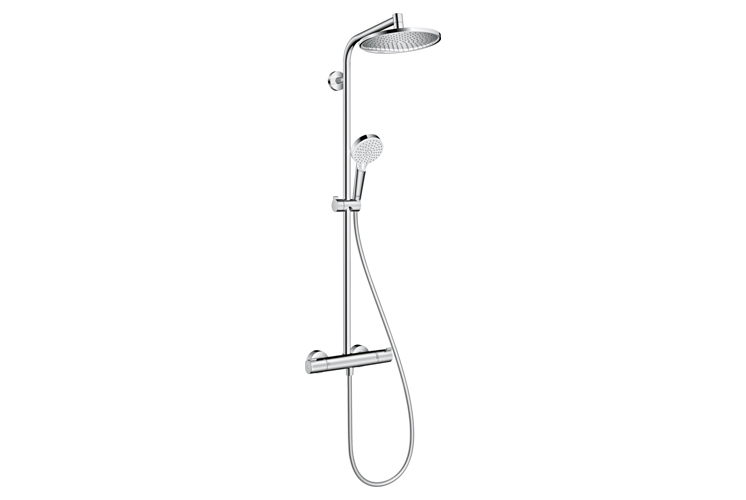 8. Hansgrohe Crometta S Showerpipe EcoSmart zestaw prysznicowy ścienny termostatyczny chrom - zestaw wyposażony w system EcoSmart ograniczający przepływ wody, dzięki któremu zminimalizowane zostaje zużycie zarówno wody, jak i energii. Bateria termostatyczna z blokadą temperatury zapewnia bezpieczeństwo i przyjemną kąpiel. Zestaw wyposażony został także w dużą okrągłą deszczownicę i system QuickClean ułatwiający czyszczenie dysz deszczownicy i słuchawki prysznicowej z uporczywego kamienia.