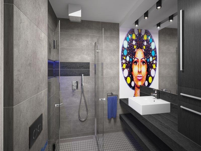 Dość jednolitą paletę barw urozmaicą płytki różnej wielkości i faktury – na przykład pod prysznicem połóż inny wzór niż przy umywalce czy wannie. Szara łazienka stanie się też bardziej instygująca, gdy fragment ściany, wnęki, obudowę wanny wypełnisz ozdobnym motywem. Połyskujące fragmenty mozaiki sprawią, że będzie bardziej szykowna i optycznie większa. Poza mozaiką i płytkami ściennymi, funkcję dekoracyjną pełnić może także wodoodporna fototapeta. Ciekawym pomysłem na oryginalną i ocieplającą wnętrze ozdobę są fotografie lub plakaty, którymi coraz więcej osób ozdabia właśnie łazienki.