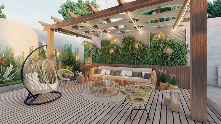 - Styl japandi dobrze oddadzą proste meble o skandynawskim rysie, połączone z akcentami przywołującymi na myśl Kraj Kwitnącej Wiśni. Do tego dywan z juty, kilka wiklinowych koszy, dyskretne lampiony i klimat gotowy. W ogrodzie japandi dobrze zaprezentują się iglaki – jodły, sosny, świerki, a także wrzosy i trawy ozdobne.