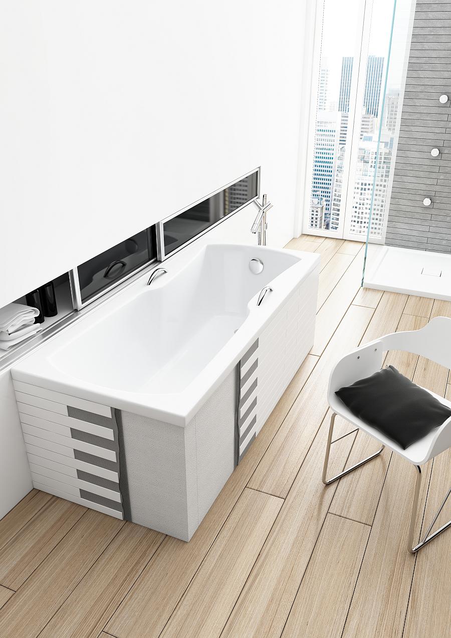 Tutaj podobnie, jak w przypadku nośników mamy możliwość wyboru obudowy elastycznej w wersji do oklejenia płytkami równo z rantem wanny w formie zabudowy prostej do podłogi lub z możliwością „wcięcia” na stopy i montażu efektownego podświetlenia LED.