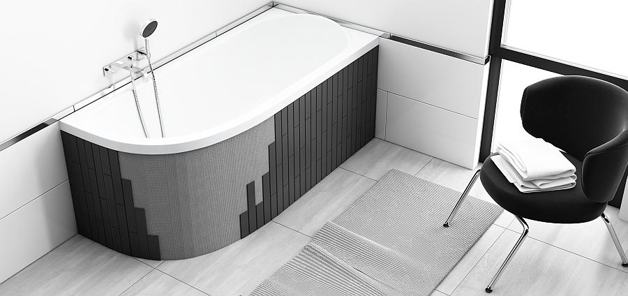 Tutaj podobnie, jak w przypadku nośników mamy możliwość wyboru obudowy elastycznej w wersji do oklejenia płytkami równo z rantem wanny w formie zabudowy prostej do podłogi lub z możliwością „wcięcia” na stopy i montażu efektownego podświetlenia LED.