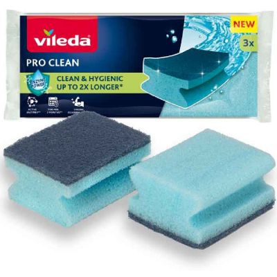 - skuteczne czyszczenie: mywak profilowany Vileda Pro Clean ma mocną warstwę cierną, która skutecznie usuwa tłuszcz i uporczywe zabrudzenia z różnych typów powierzchni