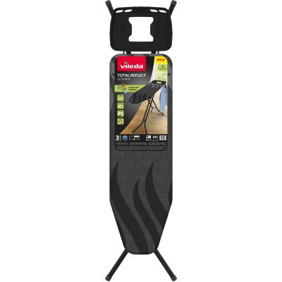 Urządzenie Vileda Total Reflect Ultimate ma metalizowaną powłokę, która odbija ciepło i parę z powrotem do prasowanego materiału, co pozwala szybciej pozbyć się zagnieceń.