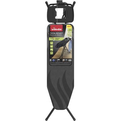 Urządzenie Vileda Total Reflect Ultimate ma metalizowaną powłokę, która odbija ciepło i parę z powrotem do prasowanego materiału, co pozwala szybciej pozbyć się zagnieceń.