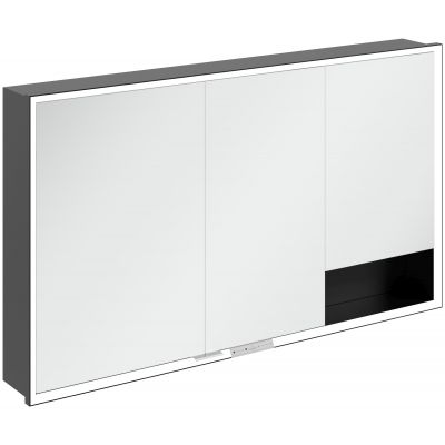 Okalająca lustro taśma LED zapewnia równomierne oświetlenie, a zintegrowane oświetlenie umywalki i podświetlane otwarte komory tworzą nastrojową atmosferę. Jasność i temperaturę barwową można wygodnie regulować za pomocą czujnika lub sterownika Smart Home. Delikatne uchwyty pozwalają na wygodne otwieranie drzwi bez pozostawiania odcisków palców, a podwójne gniazdko w środku zapewnia dodatkową funkcjonalność.