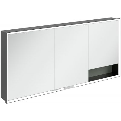 Okalająca lustro taśma LED zapewnia równomierne oświetlenie, a zintegrowane oświetlenie umywalki i podświetlane otwarte komory tworzą nastrojową atmosferę. Jasność i temperaturę barwową można wygodnie regulować za pomocą czujnika lub sterownika Smart Home. Delikatne uchwyty pozwalają na wygodne otwieranie drzwi bez pozostawiania odcisków palców, a podwójne gniazdko w środku zapewnia dodatkową funkcjonalność.