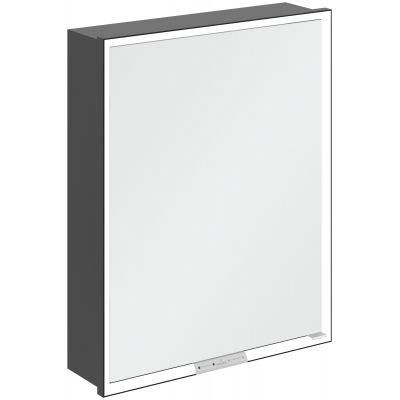 Okalająca lustro taśma LED zapewnia równomierne oświetlenie, a zintegrowane oświetlenie umywalki i podświetlane otwarte komory tworzą nastrojową atmosferę. Jasność i temperaturę barwową można wygodnie regulować za pomocą czujnika lub sterownika Smart Home. Delikatne uchwyty pozwalają na wygodne otwieranie drzwi bez pozostawiania odcisków palców, a podwójne gniazdko w środku zapewnia dodatkową funkcjonalność.