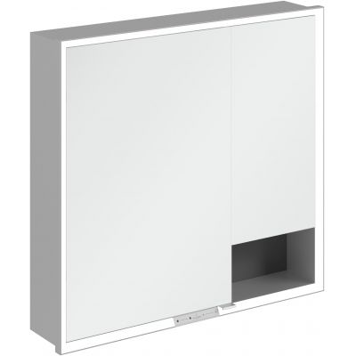 Okalająca lustro taśma LED zapewnia równomierne oświetlenie, a zintegrowane oświetlenie umywalki i podświetlane otwarte komory tworzą nastrojową atmosferę. Jasność i temperaturę barwową można wygodnie regulować za pomocą czujnika lub sterownika Smart Home. Delikatne uchwyty pozwalają na wygodne otwieranie drzwi bez pozostawiania odcisków palców, a podwójne gniazdko w środku zapewnia dodatkową funkcjonalność.