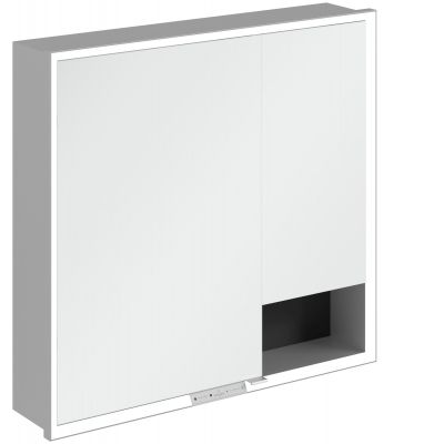Okalająca lustro taśma LED zapewnia równomierne oświetlenie, a zintegrowane oświetlenie umywalki i podświetlane otwarte komory tworzą nastrojową atmosferę. Jasność i temperaturę barwową można wygodnie regulować za pomocą czujnika lub sterownika Smart Home. Delikatne uchwyty pozwalają na wygodne otwieranie drzwi bez pozostawiania odcisków palców, a podwójne gniazdko w środku zapewnia dodatkową funkcjonalność.