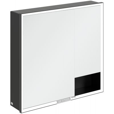 Przemyślane i atrakcyjne rozwiązanie do nowoczesnej łazienki – natynkowa szafka z lustrem My View+ marki Villeroy & Boch wprowadza do łazienki inteligentne funkcje i stylowe akcenty kolorystyczne oraz wyznacza nowe standardy dzięki zamkniętym schowkom i otwartym komorom, kolorowemu panelowi tylnemu i widocznemu aluminiowemu korpusowi w modnej czerni. Pozwala to nadać łazience indywidualną kolorystkę i design.