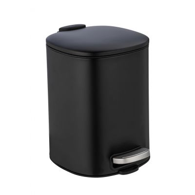 Stylowy kosz na śmieci z podnoszoną pokrywą ALASSIO w nowoczesnym, czarnym kolorze, to idealny pojemnik na odpady w łazience, toalecie dla gości czy kuchni. Praktyczny gadżet: śmietnik posiada łatwą w obsłudze, podnoszoną pokrywkę, co nie tylko dyskretnie ukrywa zawartość, ale też gwarantuje czystość i higienę w pomieszczeniu czy szafce.