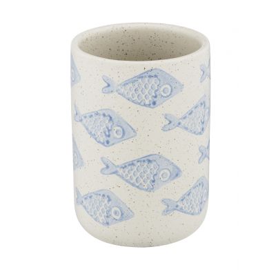 Kubek na szczoteczki ceramiczny AQUAMARIN, Wenko pomoże Ci wygodnie uporządkować akcesoria do mycia zębów całej rodziny. Jeżeli chcesz, żeby różne kosmetyki, środki higieniczne albo akcesoria kosmetyczne znalazły stałe miejsce, z całą pewnością zainteresuje Cię oferta naszego sklepu internetowego - znajdziesz tu duży wybór organizerów, mydelniczek, kubków na szczoteczki oraz wielu innych akcesoriów łazienkowych. Wybierz spośród różnych modeli, kształtów i kolorów i urządź łazienkę po swojemu!