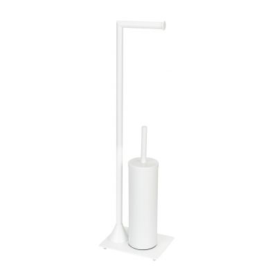 Uchwyt na papier toaletowy wraz ze stojakiem na szczotkę WC zapewniają praktyczne rozwiązanie, oszczędzając miejsce i utrzymując porządek w łazience. Szczotka znajduje się w dodatkowym pojemniku, który zapewnia higienę oraz dba o czystość w łazience.