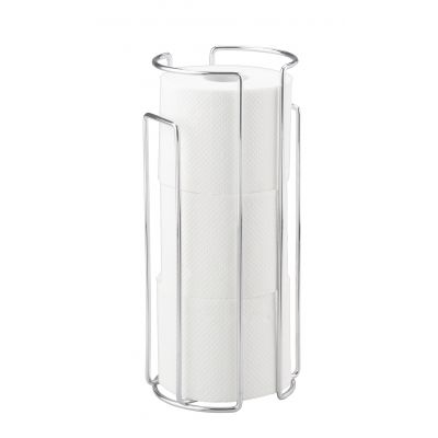 Metalowy stojak łazienkowy do przechowywania papieru toaletowego. Pomieści aż 3 rolki i sprawi, że papier będzie zawsze w zasięgu ręki. Wyposażony w stabilną, okrągłą podstawę. Wykonany ze stali chromowanej. Przeznaczony do ustawienia lub zawieszenia za pomocą załączonych śrub i kołków.