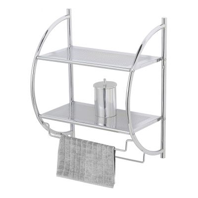 Półka oferuje dwie przestrzenie na kosmetyki i przybory kąpielowe, zapewniając optymalne wykorzystanie miejsca. Dodatkowo wyposażona w dwa wieszaki na ręczniki lub suszenie bielizny.