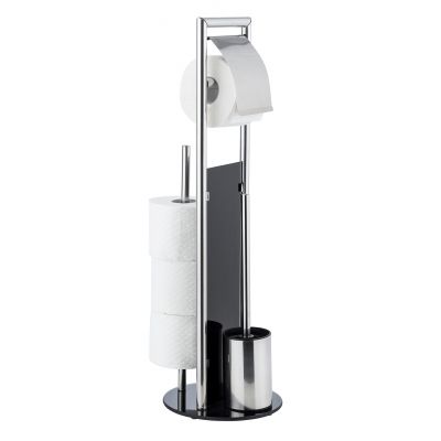 Elegancki, wolnostojący stojak łazienkowy PEBBLE STONE łączy w sobie uchwyt na papier toaletowy oraz szczotkę do WC. Atrakcyjny a zarazem elegancki design doskonale pasuje do łazienek w stylu nowoczesnym i nie tylko. Z pewnością doda każdej łazience eleganckiego charakteru i utrzyma papier oraz szczotkę w łatwo dostępnym miejscu. Ponadto zamknięty uchwyt na szczotkę zapobiegnie rozprzestrzenianiu się nieprzyjemnych zapachów do otoczenia. Solidna podstawa z tworzywa sztucznego imitującego kamień.