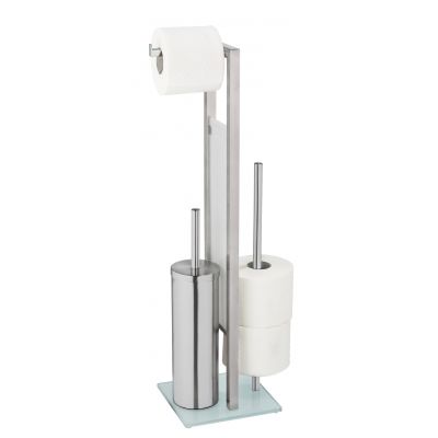 W konstrukcji stojaka łazienkowego nie zabrakło także miejsca na szczotkę toaletową. Znajduje się ona w zamkniętym pojemniku, dzięki czemu nie musisz martwić się o estetykę. Główka szczotki jest bardzo higieniczna - wykonan z silikonu.