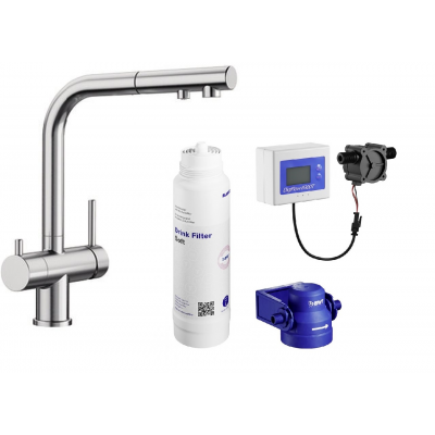 Opis zestawu Zestaw Blanco Fontas-S II bateria kuchenna stojąca stal z zestawem filtrującym wodę (525199, 527453)