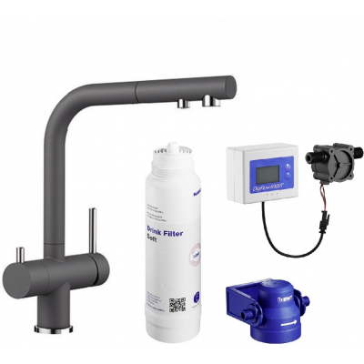 Zestaw Blanco Fontas-S II bateria kuchenna stojąca szarość skały/chrom z zestawem filtrującym wodę (525207, 527453)