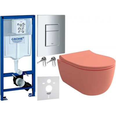 Zestaw Bocchi V-Tondo miska WC z deską sedesową wolnoopadającą i stelaż podtynkowy Grohe Rapid SL z przyciskiem spłukującym Skate chrom błyszczący (13670320129, A0336032, 38539001, 38732000)