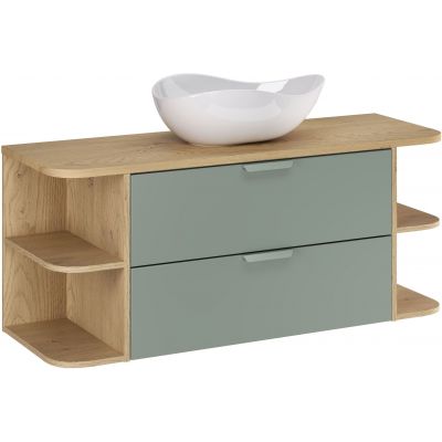 Zestaw Comad Aster Green szafka 80 cm podumywalkowa wisząca z blatem 120 cm, dwoma regałami 20 cm otwartymi i umywalką zielony/dąb SET-ASG B CREMONA 120CM LRSM UN CLOUD