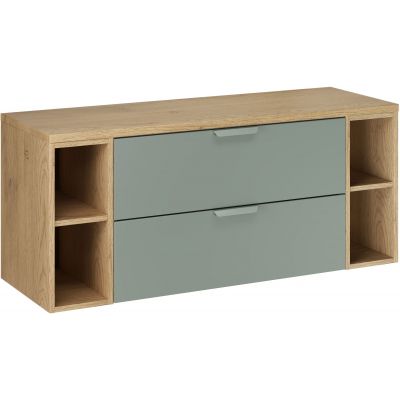 Opis zestawu Zestaw Comad Aster Green szafka 80 cm podumywalkowa wisząca z blatem 120 cm i dwa regały 20 cm otwarte zielony/dąb SET-ASG B CREMONA 120CM LR