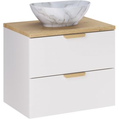 Zestaw Comad Aster White szafka 60 cm podumywalkowa wisząca z blatem 60 cm i umywalką biały/dąb SET-ASW B CREMONA 60CM UN PATI
