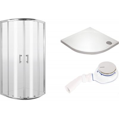 Zestaw Deante Jasmin kabina prysznicowa 90 cm półokrągła z brodzikiem Cubic i syfonem chrom/szkło przezroczyste (KGJ051P, KTK051B, NHC029C)