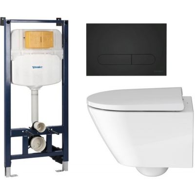 Zestaw Duravit DuraSystem stelaż podtynkowy z przyciskiem spłukującym czarny mat i miską WC Rimless D-Neo z deską wolnoopadającą (WD102900000, WD5009031000, 45880900A1)