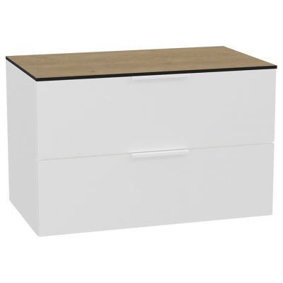 Tuto 2.0 korpus szafki 80 cm, 2 szuflady, biały połysk/dąb.