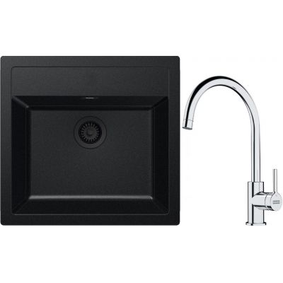 Opis zestawu Zestaw Franke Sirius SID 610-49 zlewozmywak Tectonite 56x53 cm z baterią Franke czarny mat/chrom (1430702425, 1150693228)