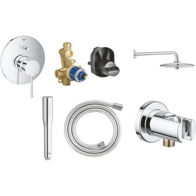 Zestaw Grohe Essence bateria wannowo-prysznicowa z deszczownicą z ramieniem ściennym Euphoria 260 i zestawem natryskowym chrom (19285001, 33961000, 26459000, 27400000, 28364000, 28628000)