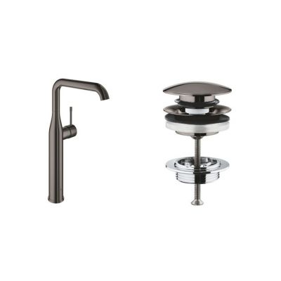 Opis zestawu Zestaw Grohe Essence New bateria umywalkowa stojąca wysoka z korkiem Hard Graphite (32901A01, 65807A00)