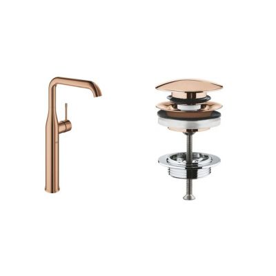 Opis zestawu Zestaw Grohe Essence New bateria umywalkowa stojąca z korkiem Warm Sunset (32901DA1, 65807DA0)